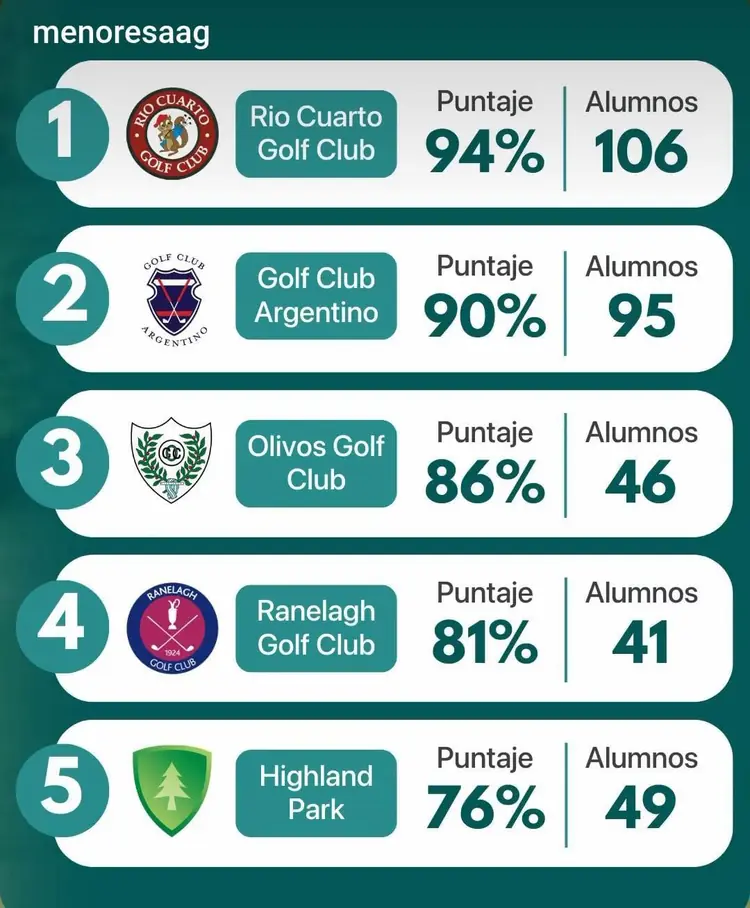 RANKING NACIONAL DE ESCUELAS DE GOLF
